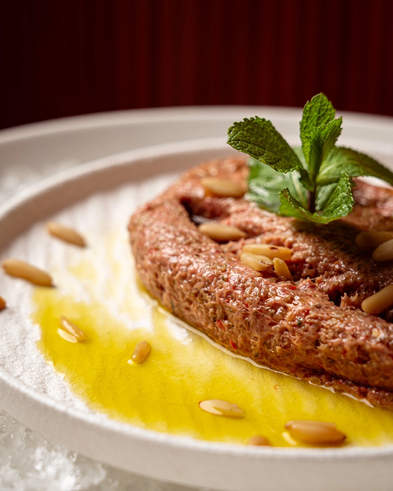 Sunday Kibbeh Nayeh Served every Sunday from 12 noon aed 61 raw habra Premium lean lamb,finely minced. Spices on the side. aed 61 aed 61 kibbeh nayeh A classic Lebanese specialty of raw lean lamb, blended with fine bulgur wheat and spices. aed 61 aed 61 frakeh Raw lean lamb, with bulgur wheat, herbs, onion and spices. aed 61 aed 183 tablyeh nayeh Assorted platter of habra nayeh, kibbeh nayeh and frakeh. aed 183 Back to main menu